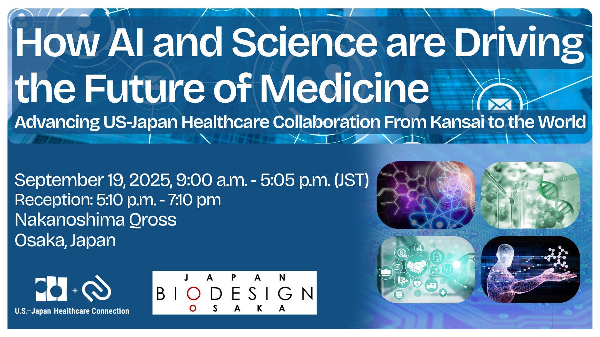 Our 2025 annual conference will focus on the theme of “How AI and Science are Driving the Future of Medicine: Advancing US-Japan Healthcare Collaboration From Kansai to the World ” and will feature keynote presentations by Dr. Yoshiki Sawa, Specially Appointed Professor, Division of Health Science, Osaka University Graduate School of Medicine, Director of Osaka Keisatsu Hospital & President, Organization of Future Medicine, and Anish Bhatnagar, Chairman of the Board & CEO, Soleno Therapeutics Inc.